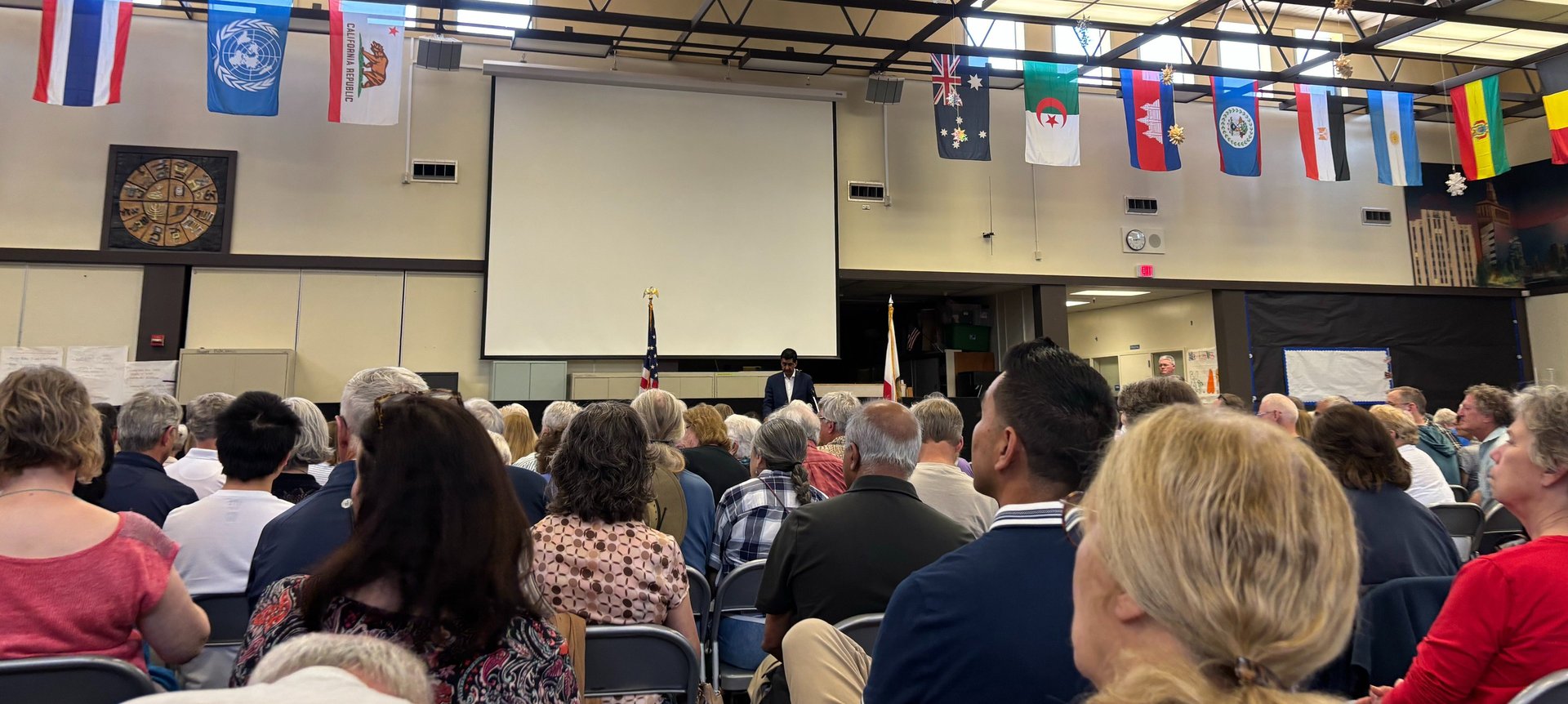 Director Cham Yu and Deputy Director Gautham Ramkumar speaks at Rep. Ro Khanna's town hall.