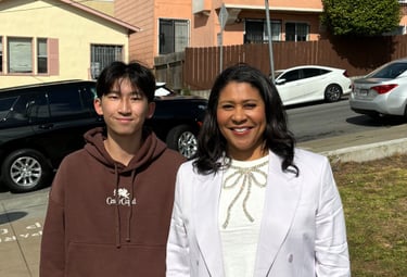Director Cham Yu meets with San Francisco Mayor London Breed on behalf of Rebuild the Bay.