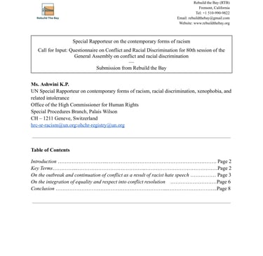 Call for Input: Questionnaire on Conflict and Racial Discrimination for 80th session of the General Assembly on conflict and racial discrimination