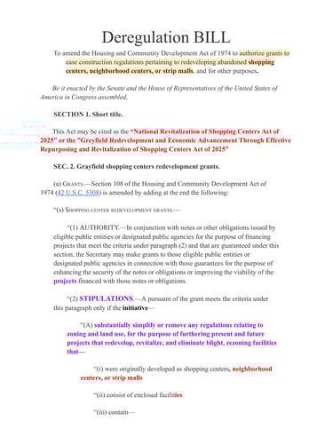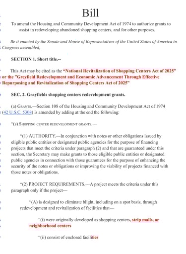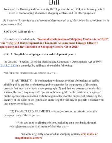 Congressional Strip Mall Revitalization Bill initiative begins development.